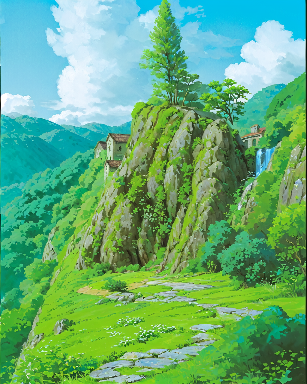 The beautiful Ghibli scene has a powerful expression for both architecture and landscape
