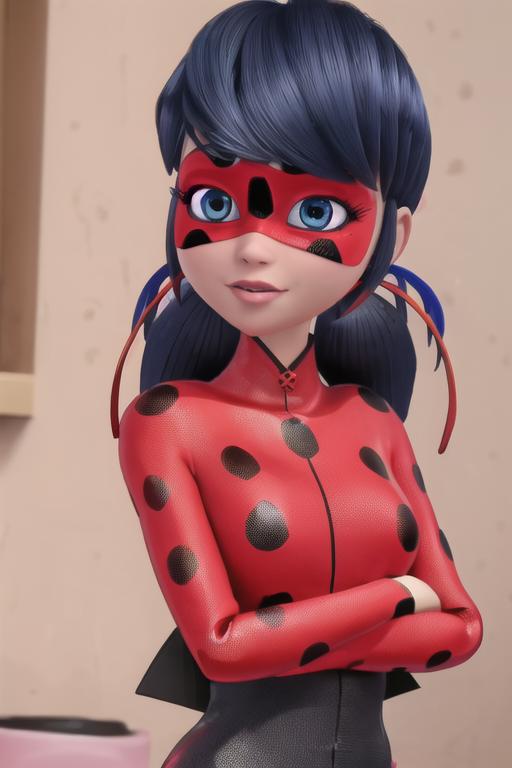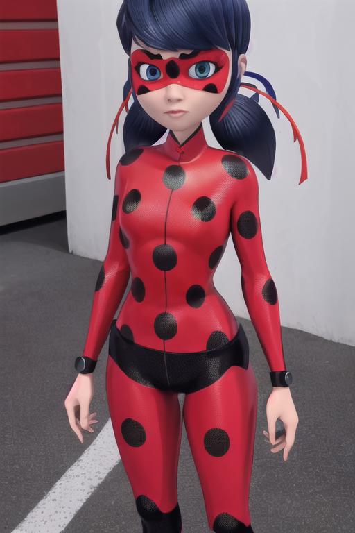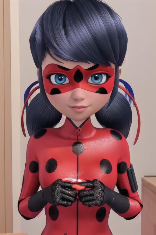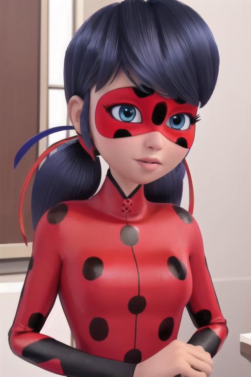 Usually makes generations as a Marinete, the trigger words to use it as lady bug are usually "red and black mask", "ladybug costume", "ladybug outfit".