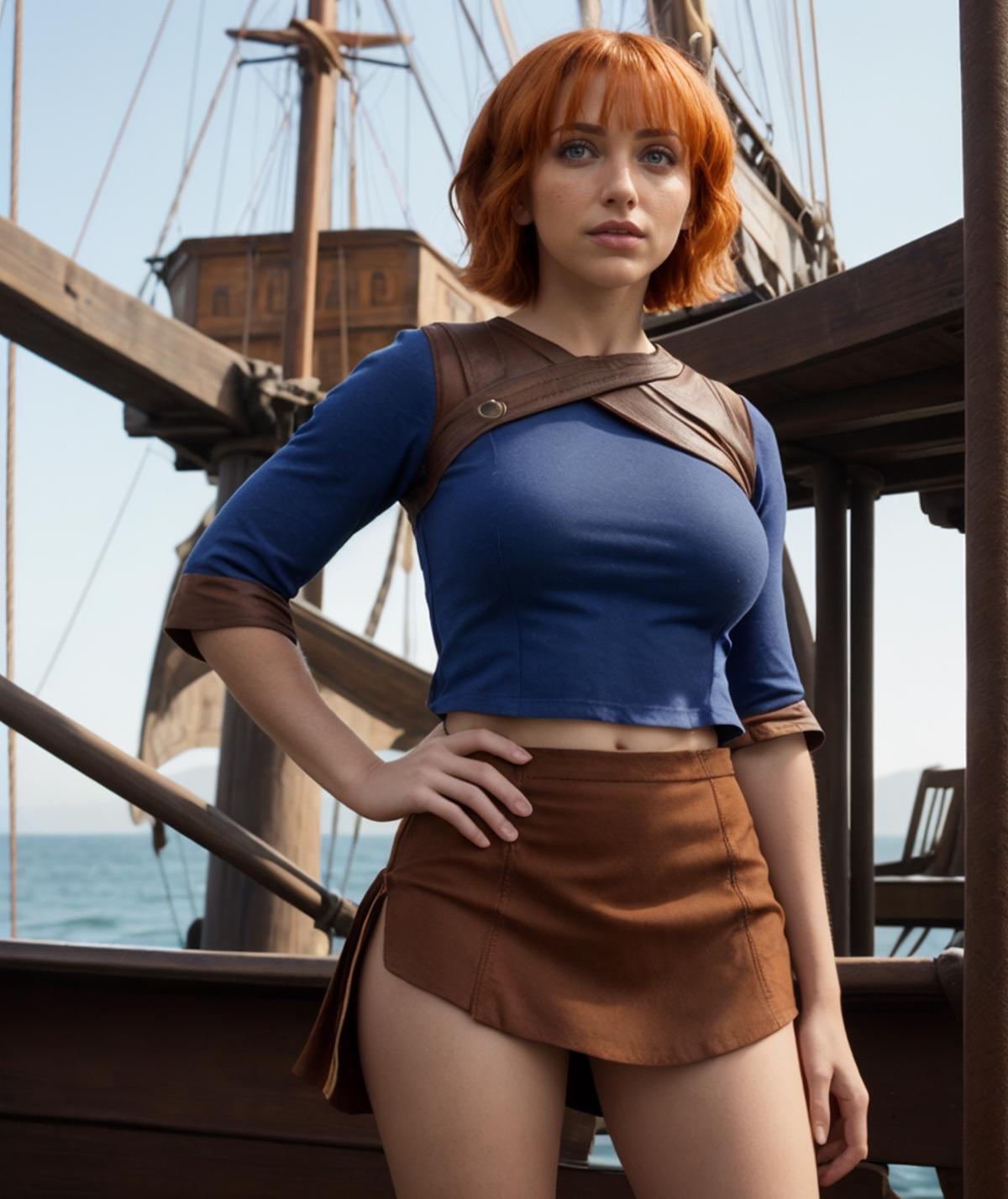 Emily Rudd - Nami - One Piece - LORA π: SD 1.5 v2.3: quiron_EmilyRuddNamiQuiron_v020310_Lora.safetensors