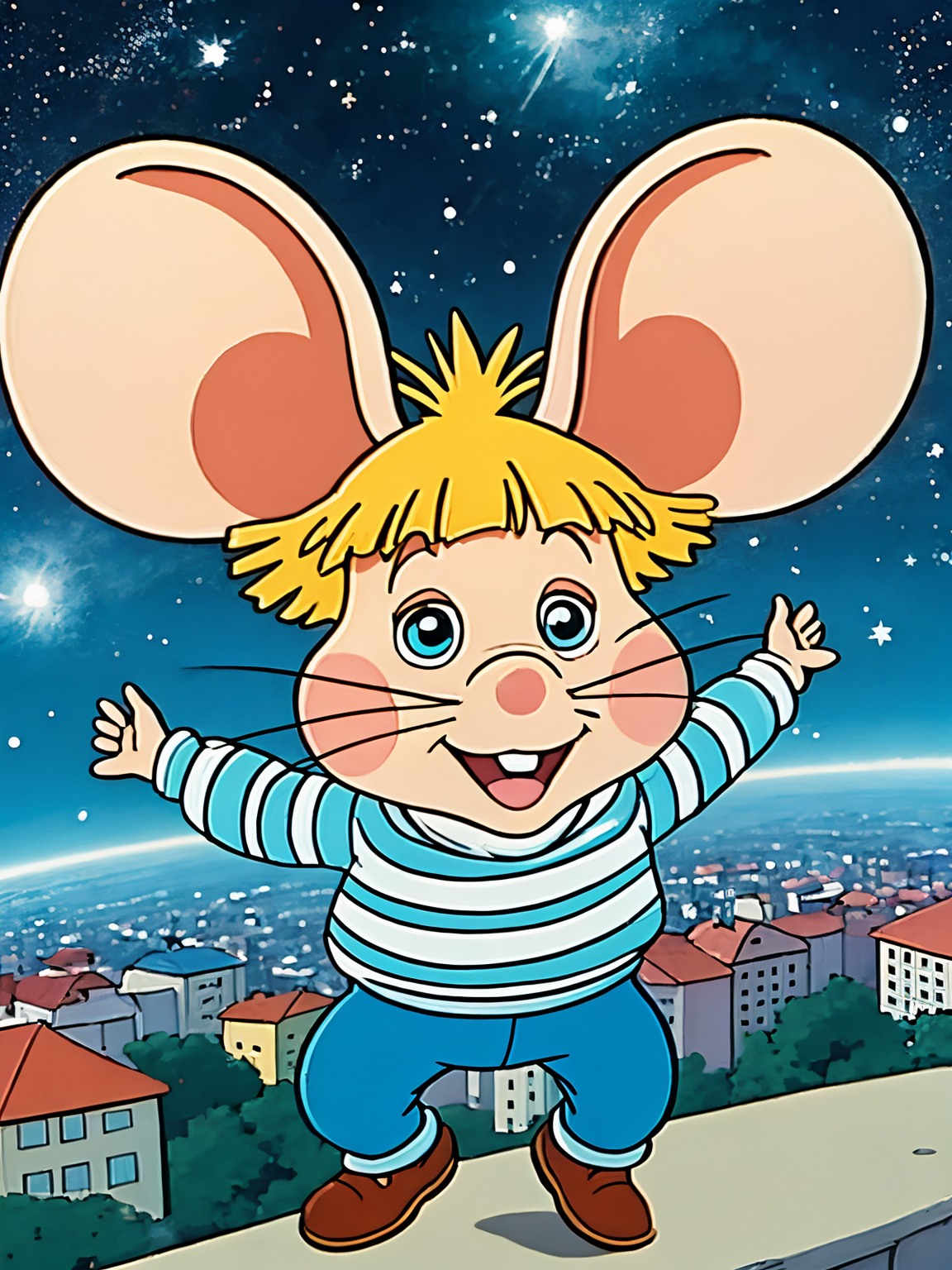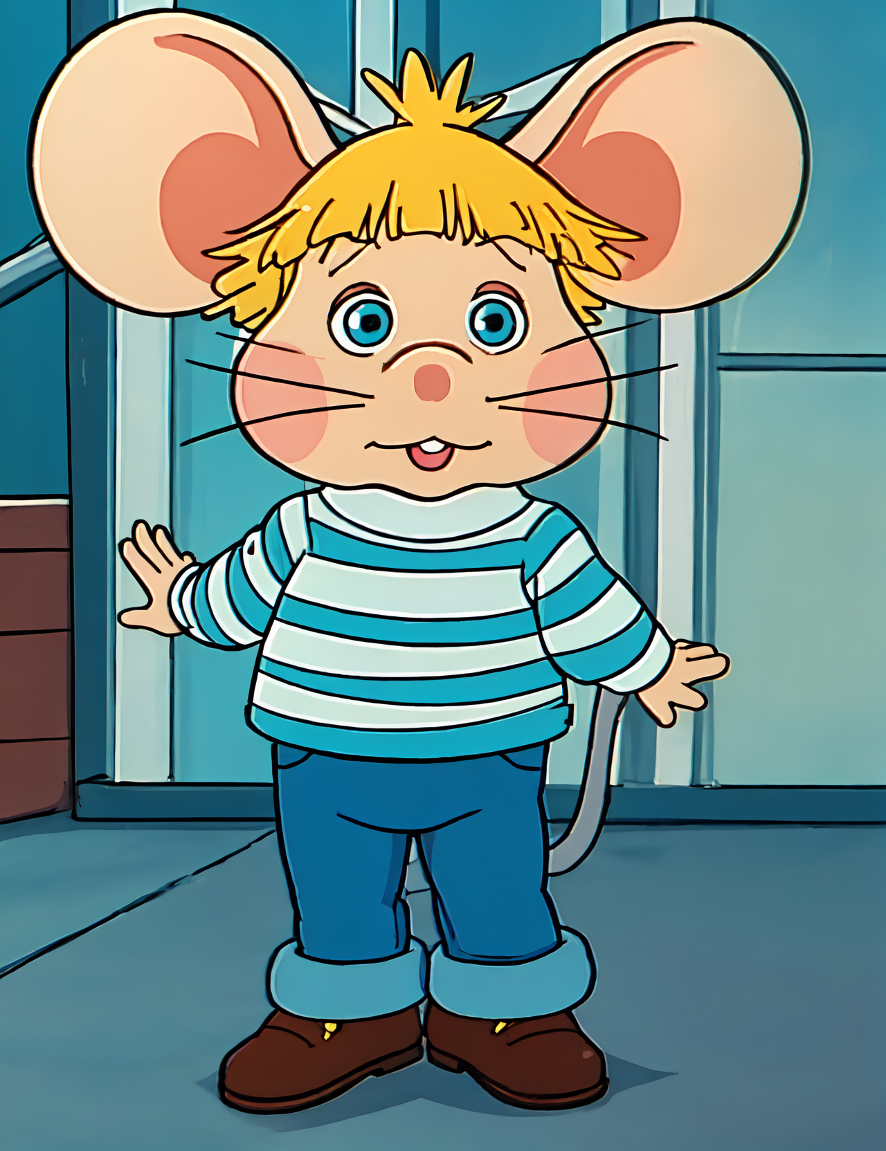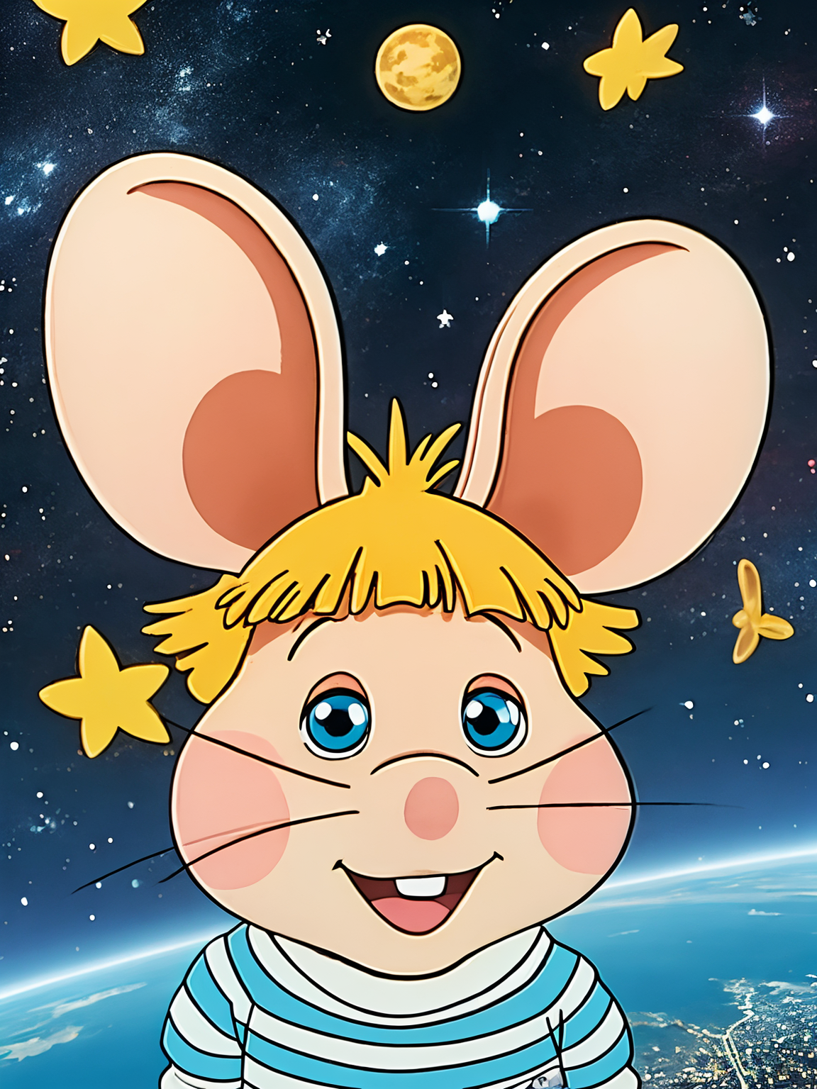 Hello again, everyone! If anyone remembers, there was this 80s anime character, Topo Gigio! This hero is popular in Italy, as well as in Japan! I used to watch this anime in my childhood, and it was such a delightful cartoon. And since it turned out to be possible to generate images with LoRa, I decided to recreate him using the neural network. I hope you'll find it interesting! Try out different settings and add your own descriptions (prompts). Have a great time generating images, everyone! Don't forget to leave a review with stars! Thank you! 🙏🎈