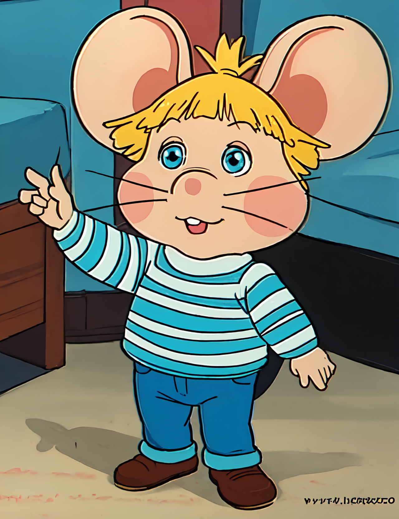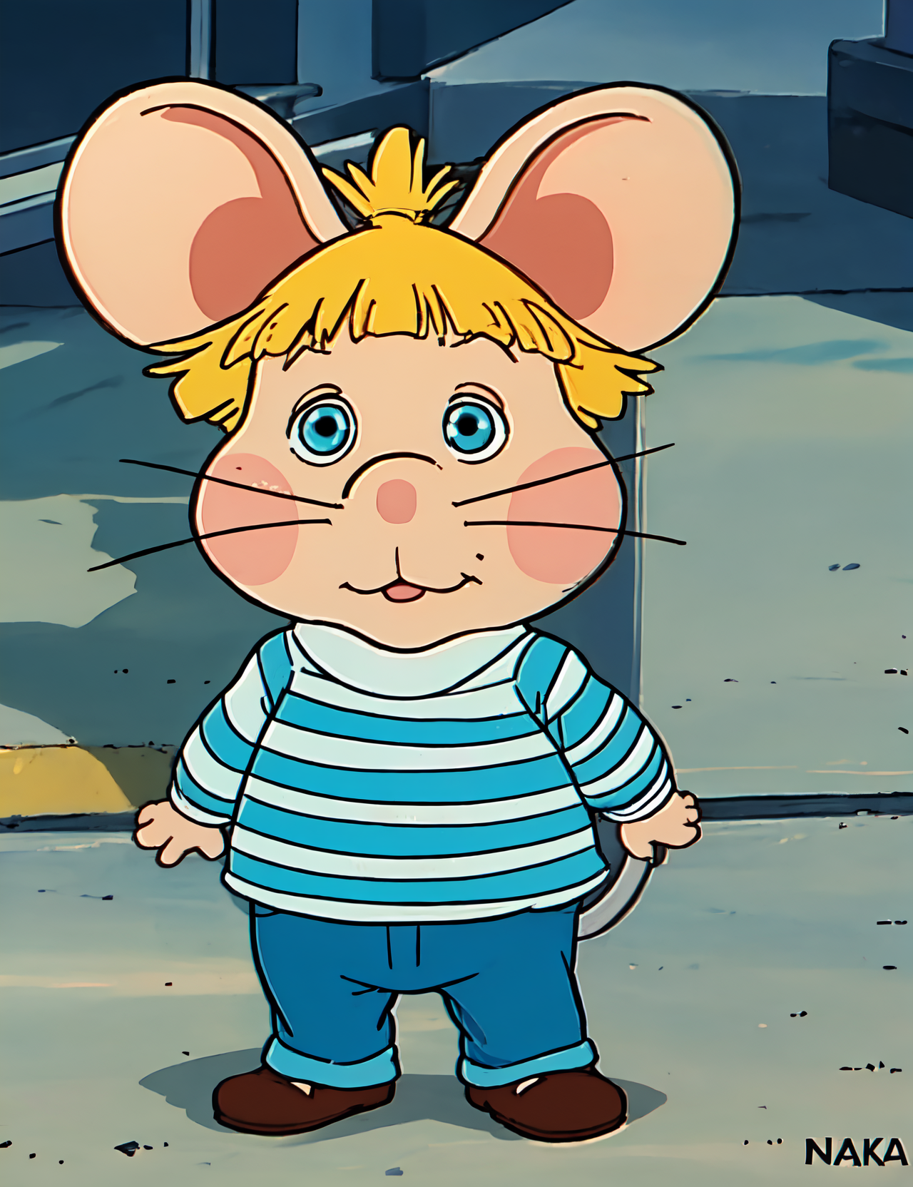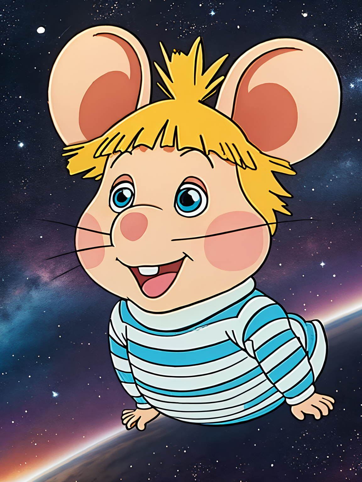 Hello again, everyone! If anyone remembers, there was this 80s anime character, Topo Gigio! This hero is popular in Italy, as well as in Japan! I used to watch this anime in my childhood, and it was such a delightful cartoon. And since it turned out to be possible to generate images with LoRa, I decided to recreate him using the neural network. I hope you'll find it interesting! Try out different settings and add your own descriptions (prompts). Have a great time generating images, everyone! Don't forget to leave a review with stars! Thank you! 🙏🎈