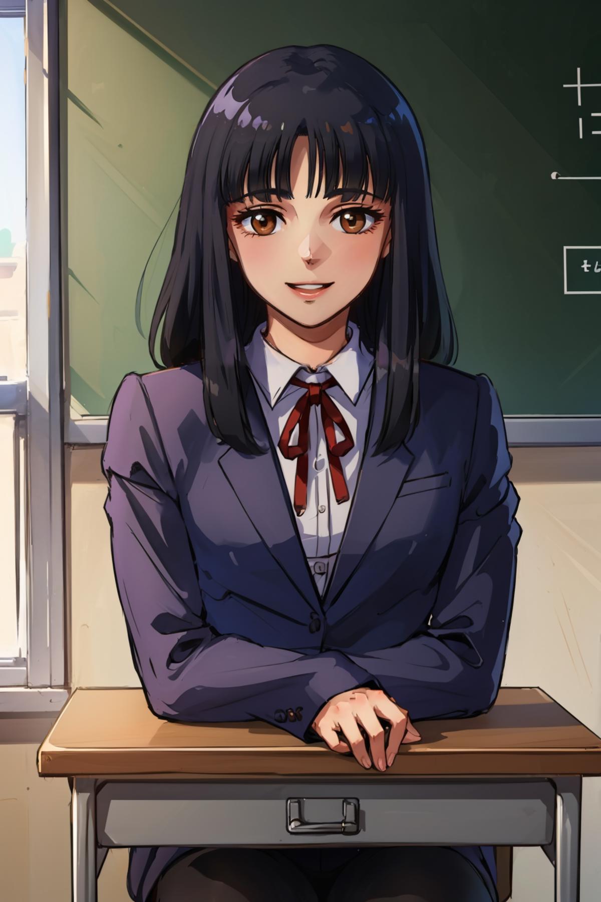 Tags: yumikomt, long hair, school uniform, blunt bangs, black hair, neck ribbon