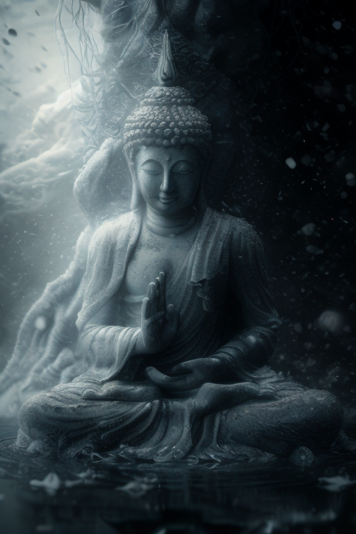 Buddha, detailed face, sunset