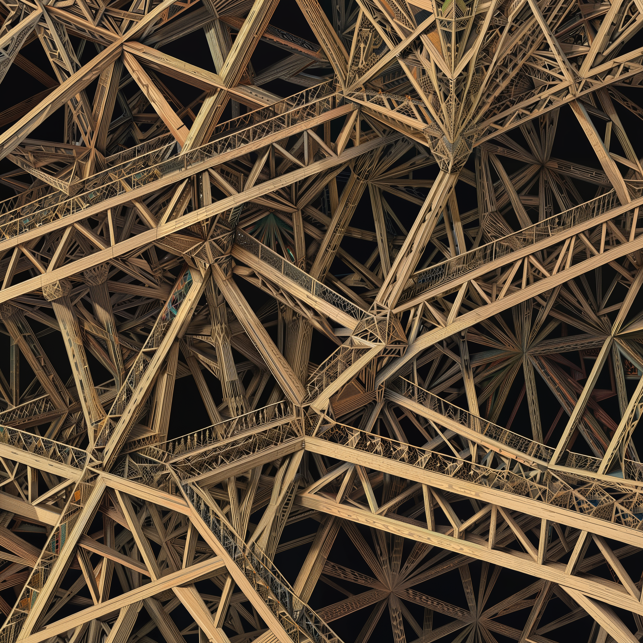 Psychedelic architecture, structure, truss, buildings, fractal, multidimensional, detailed, mc Escher, straight lines, polygon, angles, geometric lora:add-detail-xl