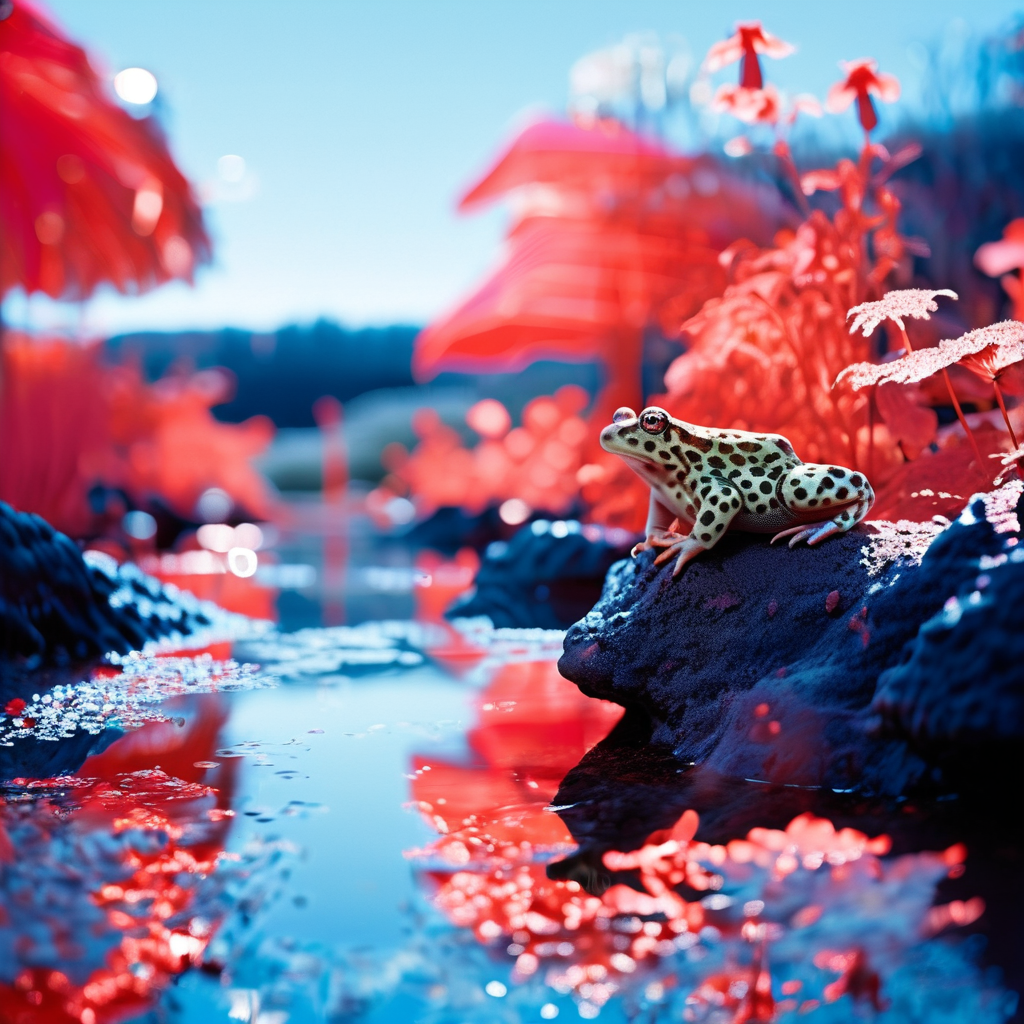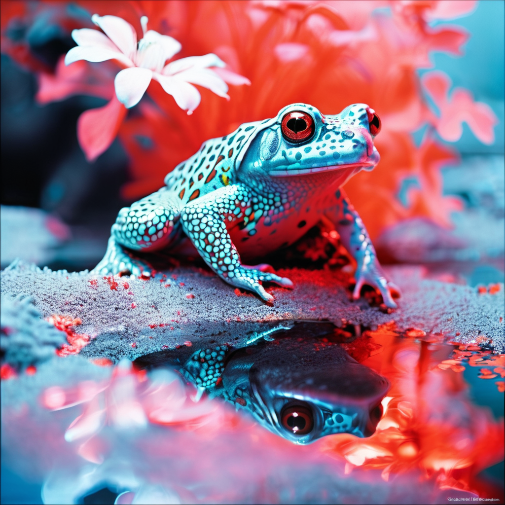 (Infrared Photography by Geneviève Élisabeth Disdéri and Larry Fink:1.2), award winning, spadefoot toad, (aesthetic of romantic landscape with checkout lines atmosphere:0.5), global illumination, sharp focus, trailblazing outstanding magnum with precise details, (phthalocyanine blue and contrasting colors:0.1)