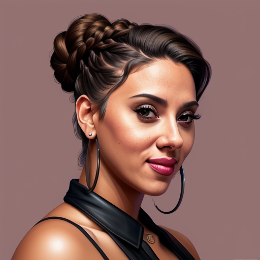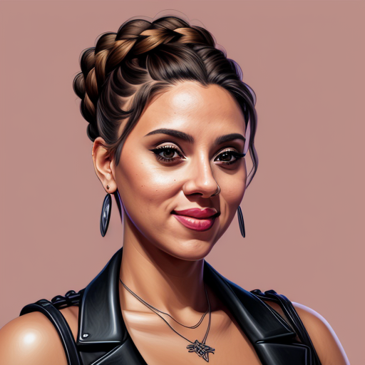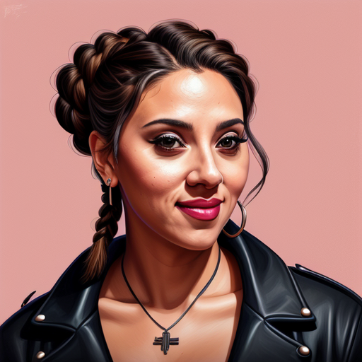 A portrait of women, Instagram pic style, Minimal, A hispanic woman with hair in a braided updo, Dark eyeshadow, Thick eyeliner, Goth, Blush, Style of Sam Butcher art, Highly detailed, Digital painting, Artstation