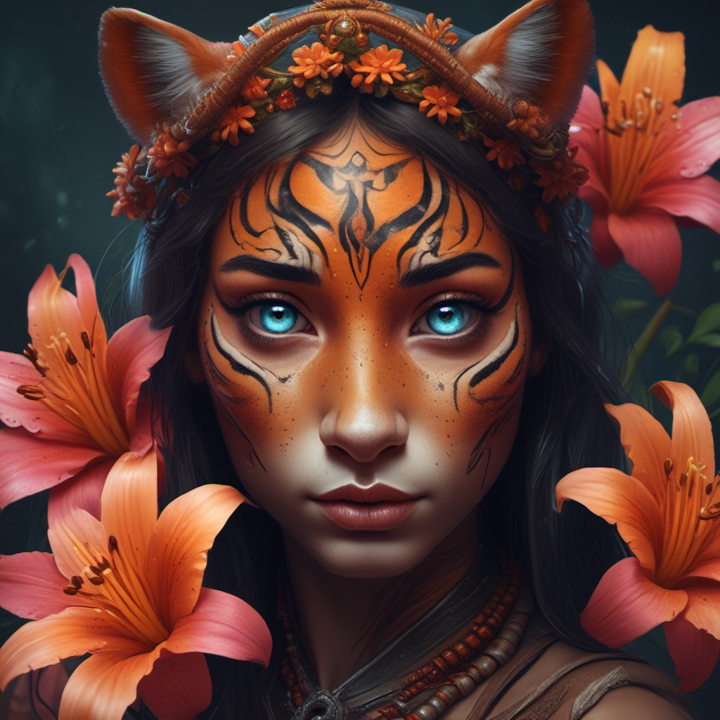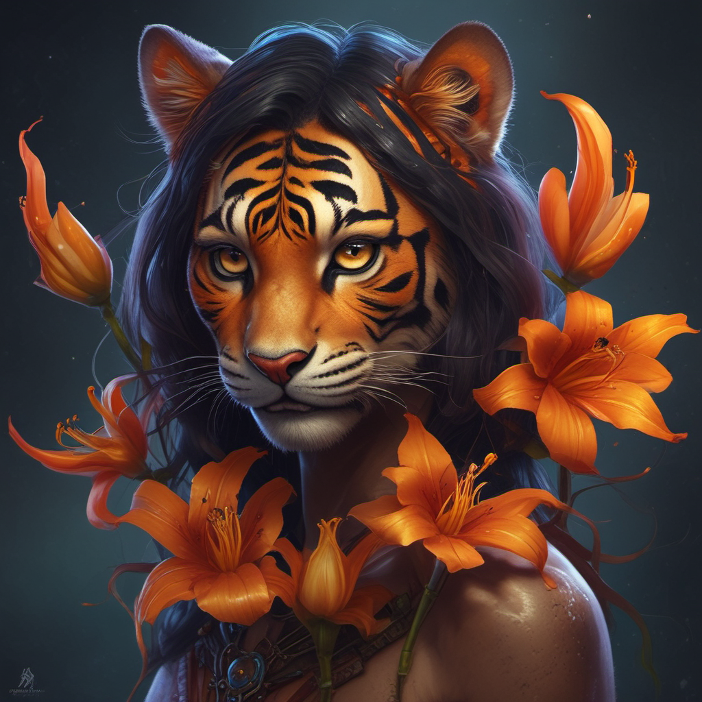 tiger lily, Detailed, Digital painting, Artstation, Dark lighting, Concept art, Intricate
