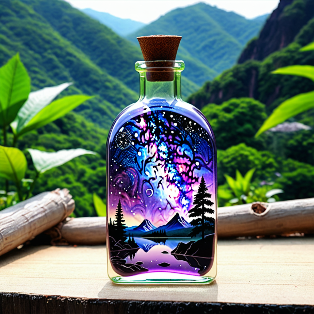 beautiful scenery nature glass bottle landscape, , purple galaxy bottle,